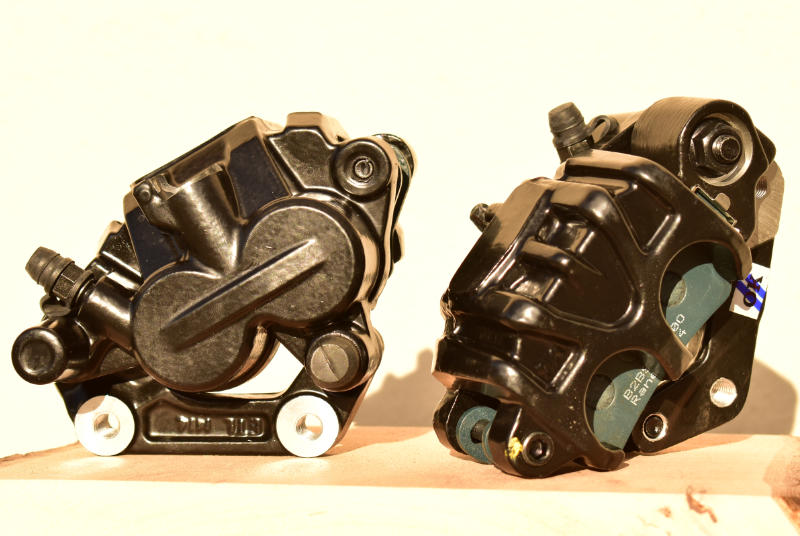 Für alle EFI Modell ohne ABS. Kann auch mit PRICOL oder BYBRE Handbremspumpe kombiniert werden. Kein Festgammeln der Schwimmlagerbolzen. KTM Belagsform.