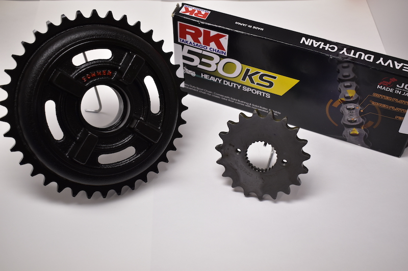 Kette RK für alle Enfield Modelle. Gute Japanische Standardkette mit Clipschloß. Für Bullet 350 (Vergaser) 94 Glieder, Bullet 500/535 (Vergaser) 96 Glieder und Bullet EFI (Einspritzanlage) 102 Glieder.