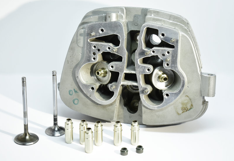 Für den Zylinderkopf aller EFI Modelle bieten wir eine Überholung mit zwei Bronze-Ventilführungen an. Diese ersetzen die original Führungen aus Grauguss. Preis für Austausch der Führungen und Fräsen der Sitze. Inklusive zweier Bronzeführungen